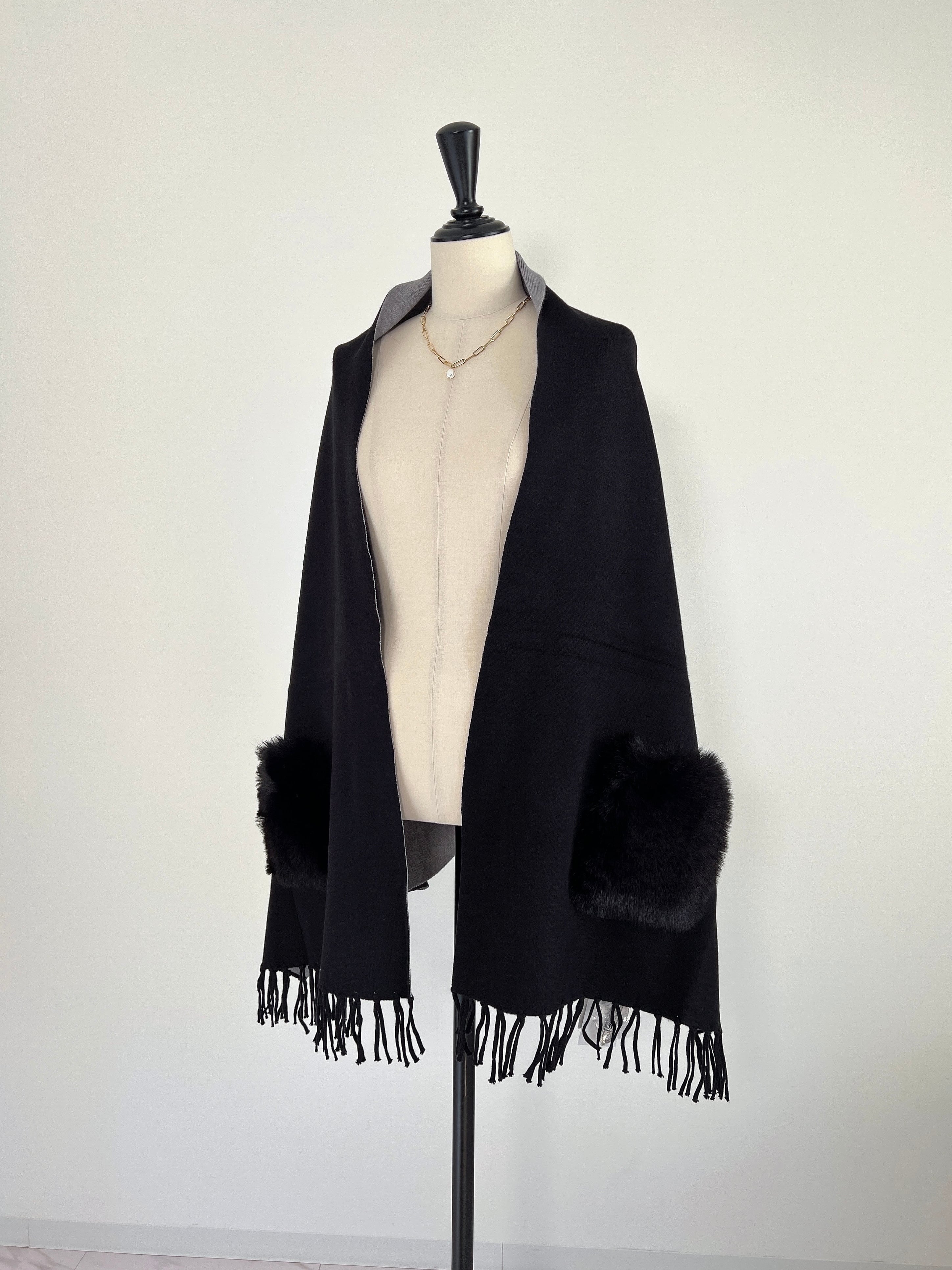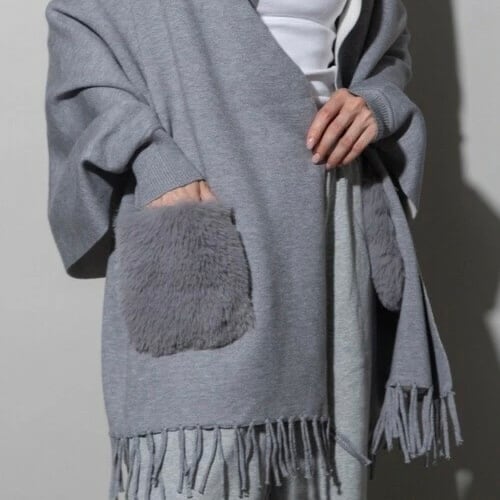 ポケットファーポンチョ カーディガン