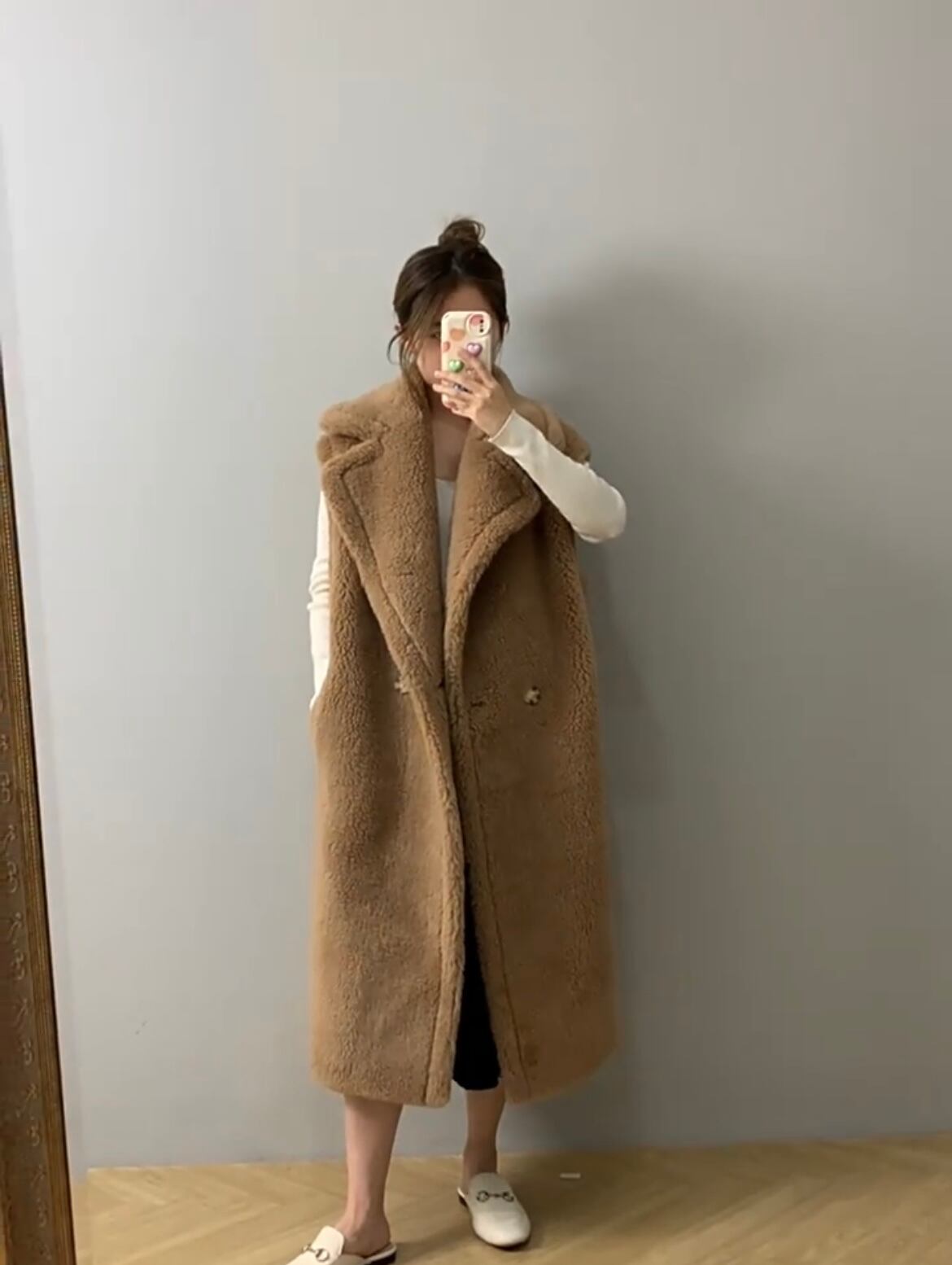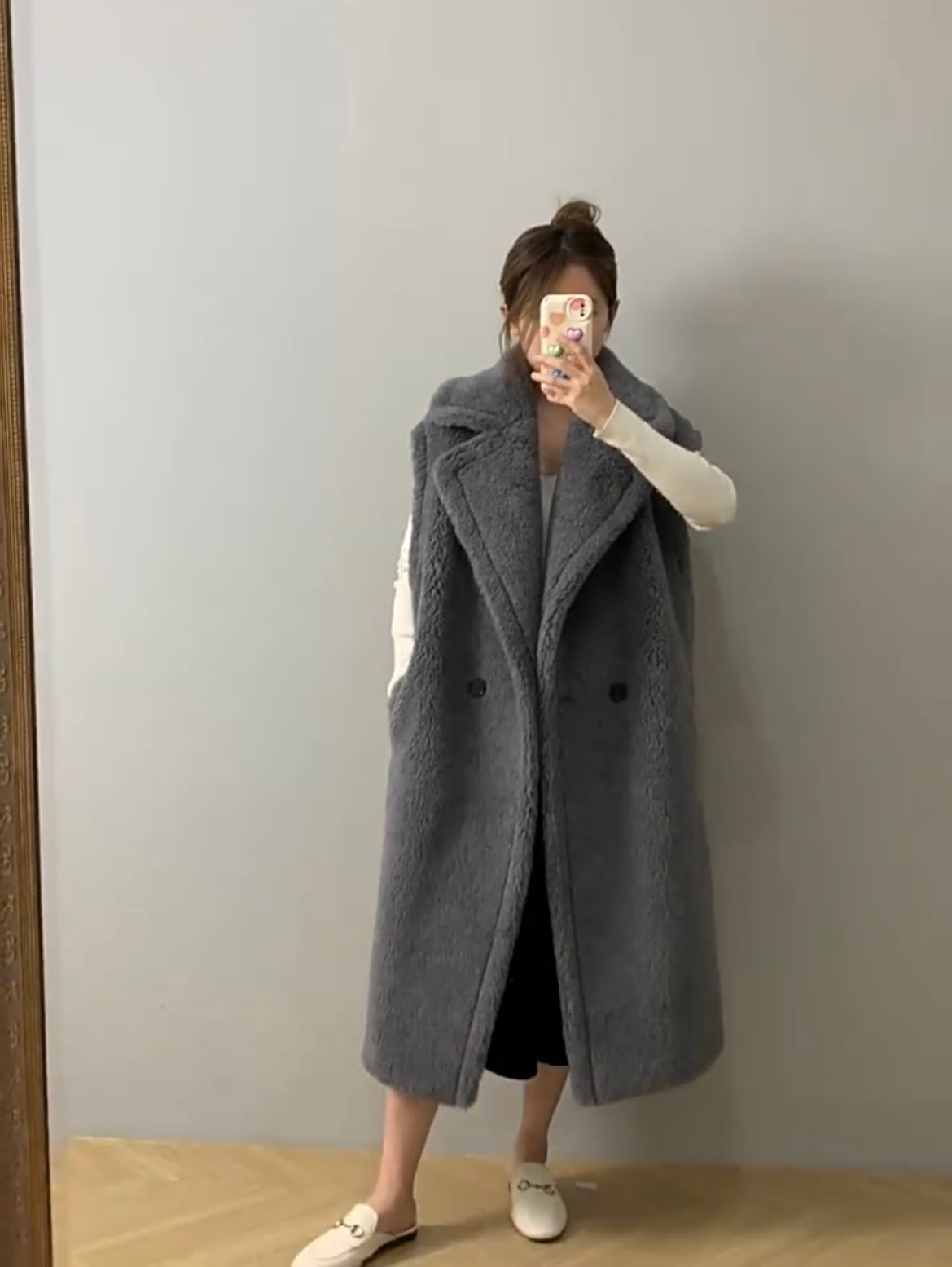 高品質なアルパカ、シープ、シルクを使用したベアロングジレです。