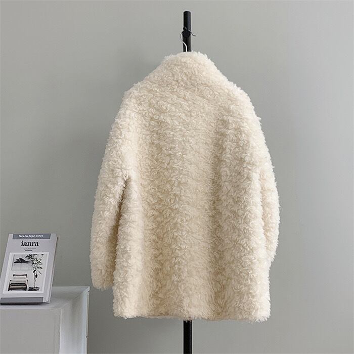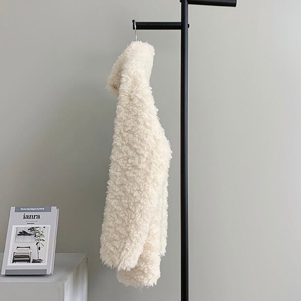 ふわふわで柔らかな肌触りとプードルみたいな素材感が可愛いウールコートです。