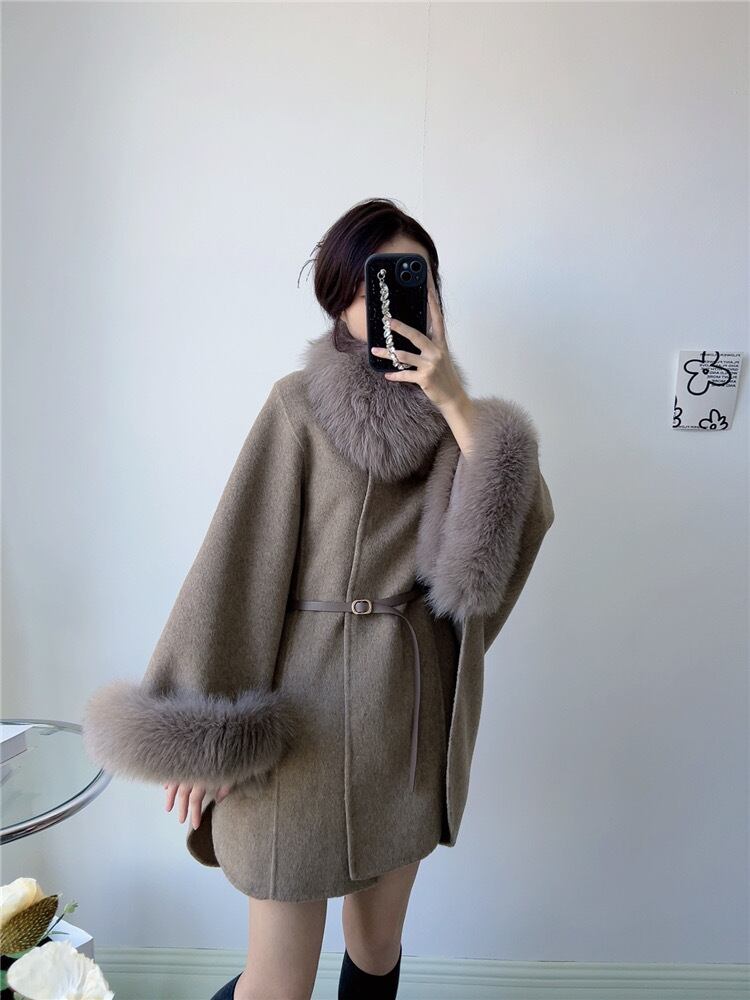 ボリュームのあるファーが上品で大人可愛いポンチョコート。